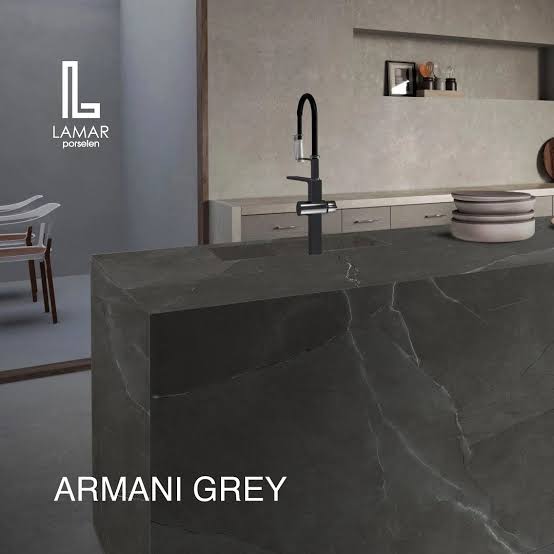 Armani Grey’in en ayırt edici özelliği, yüzey üzerindeki damarların “rastgele değil, kontrollü” bir dağılıma sahip olmasıdır. Bu durum tezgahın karmaşık görünmesini engeller ve mekânda sade ama güçlü bir odak noktası oluşturur. Özellikle düz hatlı mutfaklarda, bu yüzey mekânın genel çizgisini bozmadan estetik bir derinlik kazandırır.